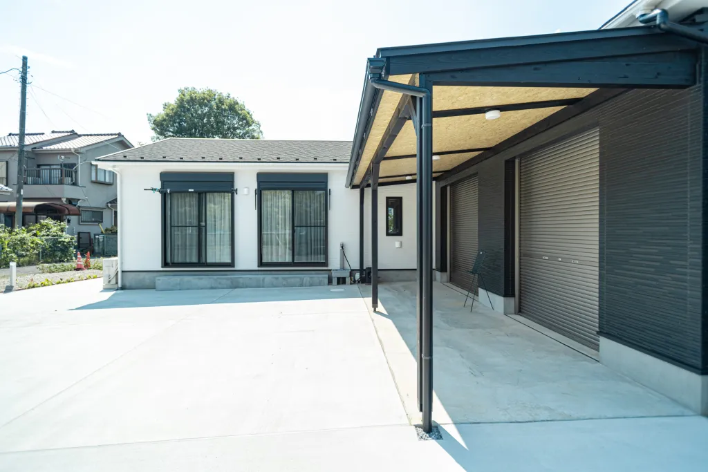 屋根の設置から地面のコンクリート設置まで、快適な駐車スペースの工事一式。